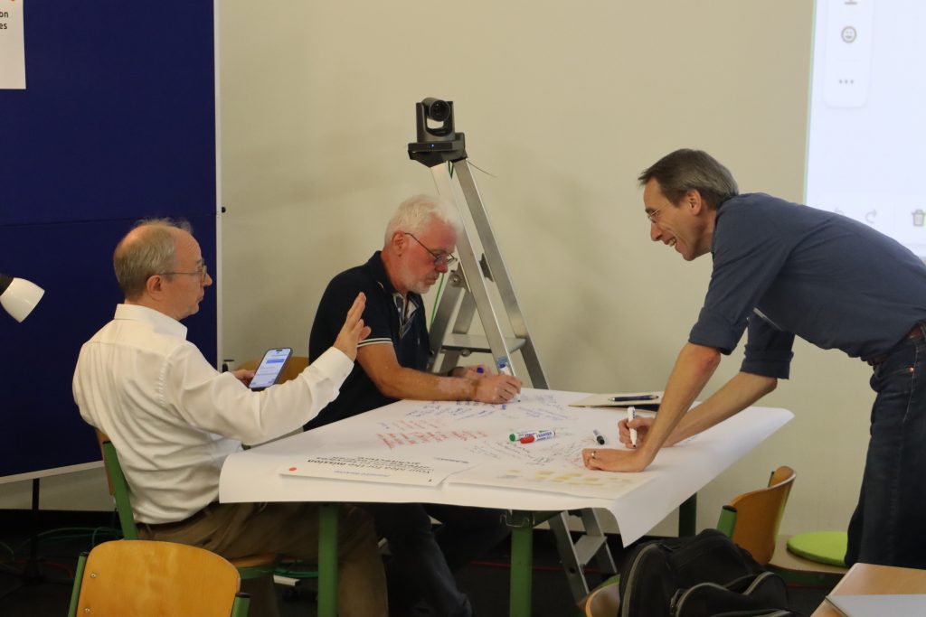 moderiert von Joachim Hecker, einem erfahrenen Wissenschaftsjournalisten und Ingenieur, arbeiteten die Teilnehmer in einem „World Café“-Format: In rotierenden Kleingruppen wurden vier Themenfelder diskutiert: